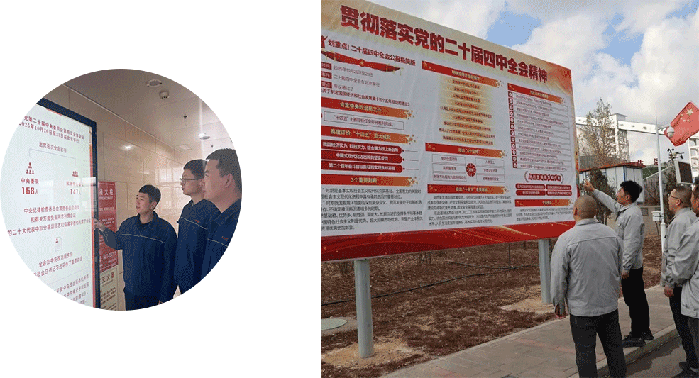 新疆公司黨委以“全覆蓋、重實效、有特色”為主線,掀起學習宣貫黨的二十屆四中全會精神熱潮。學習培訓分層推進。黨委會議率先專題學習,將全會精神納入干部培訓必修課,配發輔導讀本,依托黨委中心組、讀書班、“三會一課”等開展常態化學習;打造“班前會微課堂”“指尖微課堂”,通過微信公眾號、學習APP推送公報解讀、專家講座,設置在線答題、知識自測,搭配礦區LED屏滾動播放解讀視頻,實現“碎片化”學習“不斷線”。